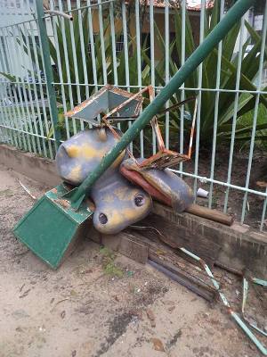 Dos sete brinquedos que existiam, apenas dois escorregadores ainda pode ser utilizados, mas, com restrições, porque as peças estão se soltado e o que poderia servir de diversão se transformou em materiais cortantes. Alguns já foram totalmente desmontados pela ação do tempo e por falta de zelo, foi o caso do carrossel e dos balanços. Para piorar, os banquinhos estão quebrados e o que sobrou acumula ferrugem.